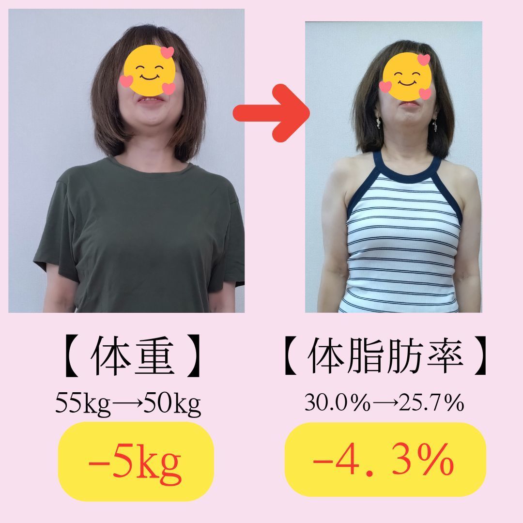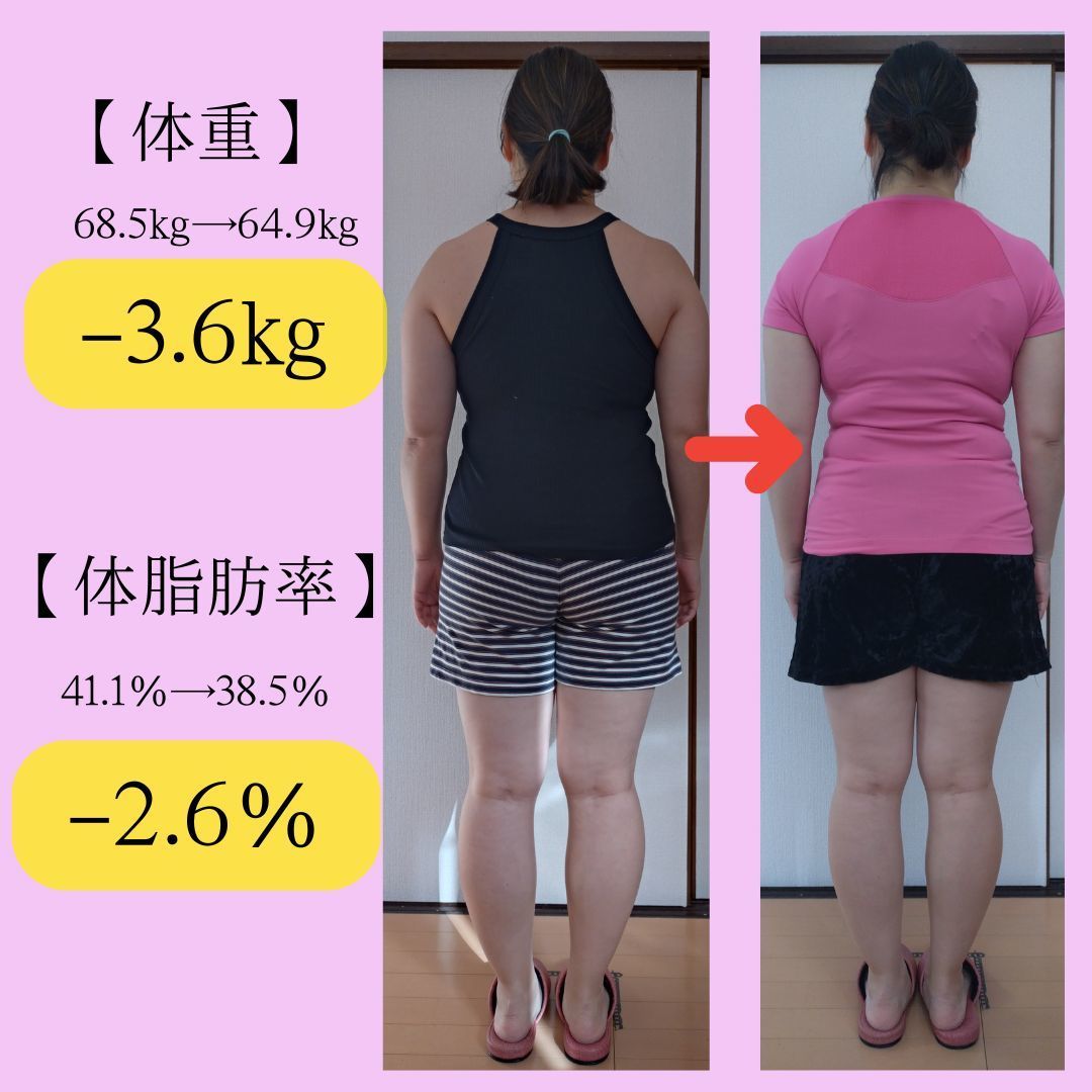 何をやっても痩せなかったとお悩みだったお客様が、スタートしてから1カ月で3㎏以上お痩せになっています。