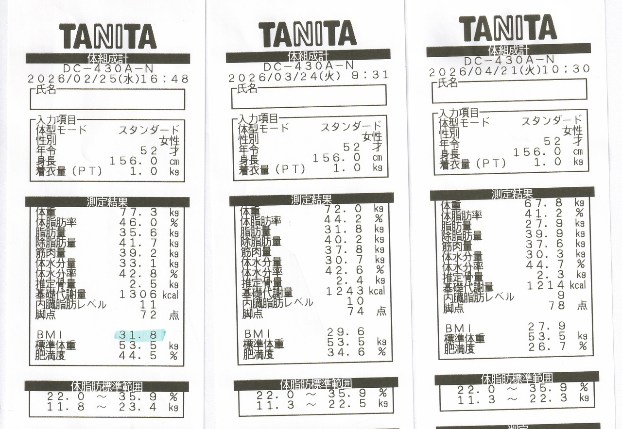 | 2026年4月15日 | 81㎏→77㎏ |