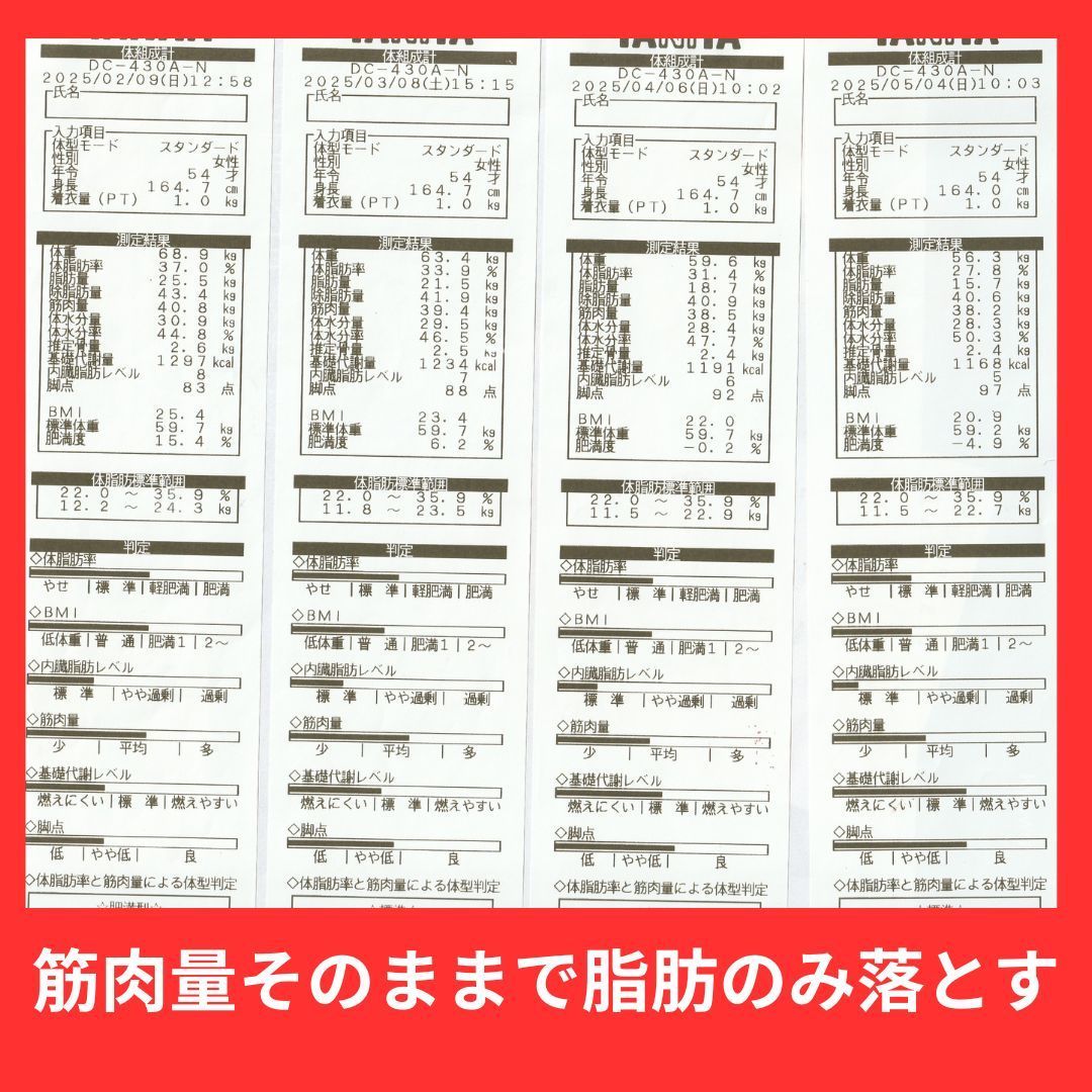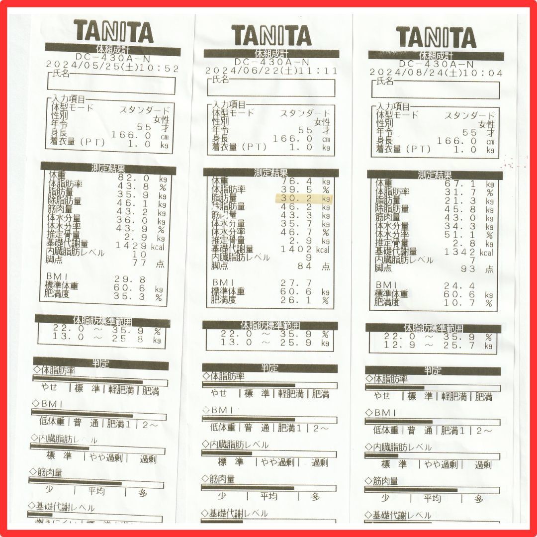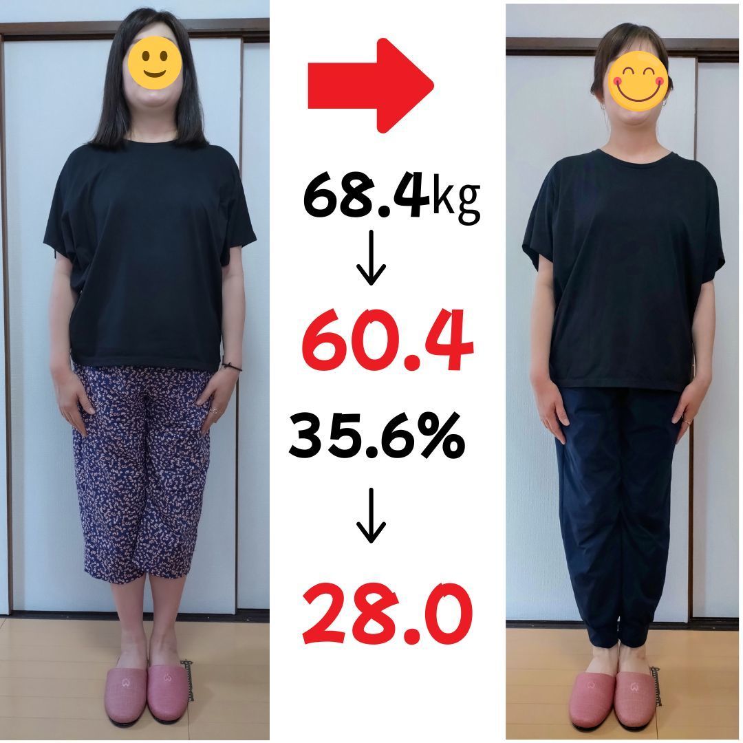 体脂肪率40.1%から30%とこちらも改善なさっていらっしゃいます。