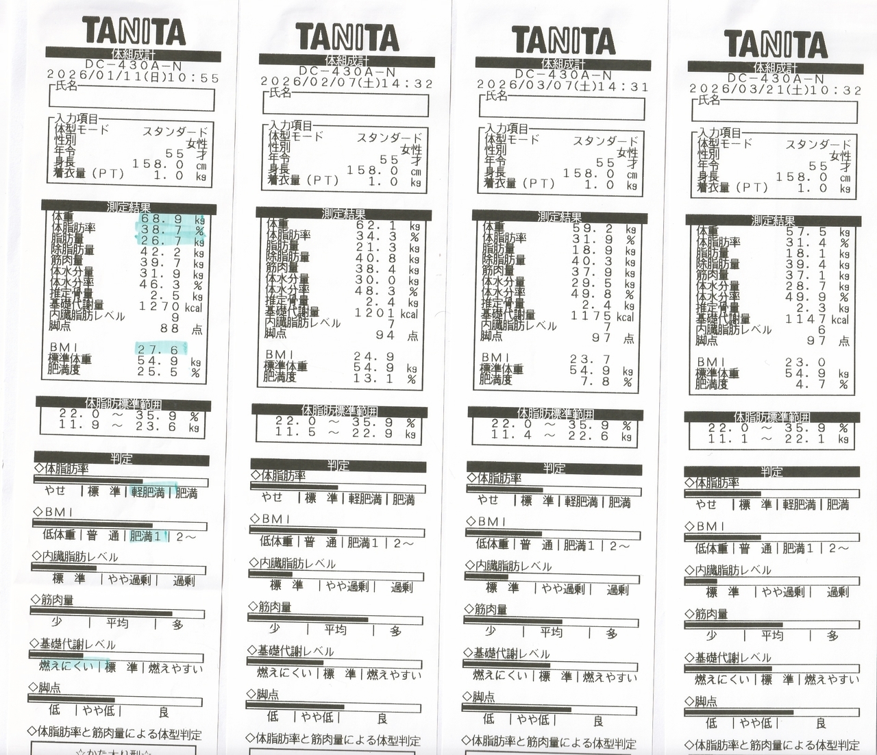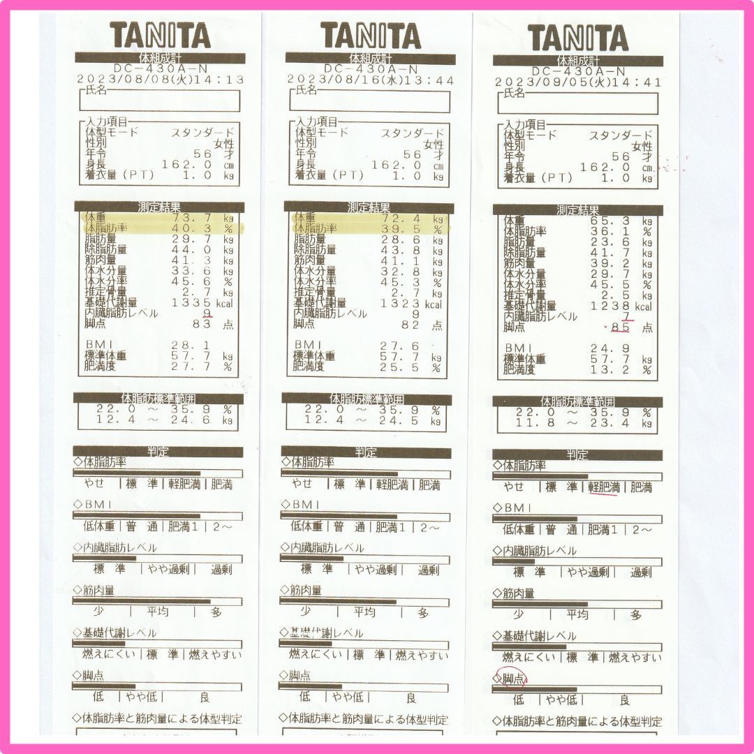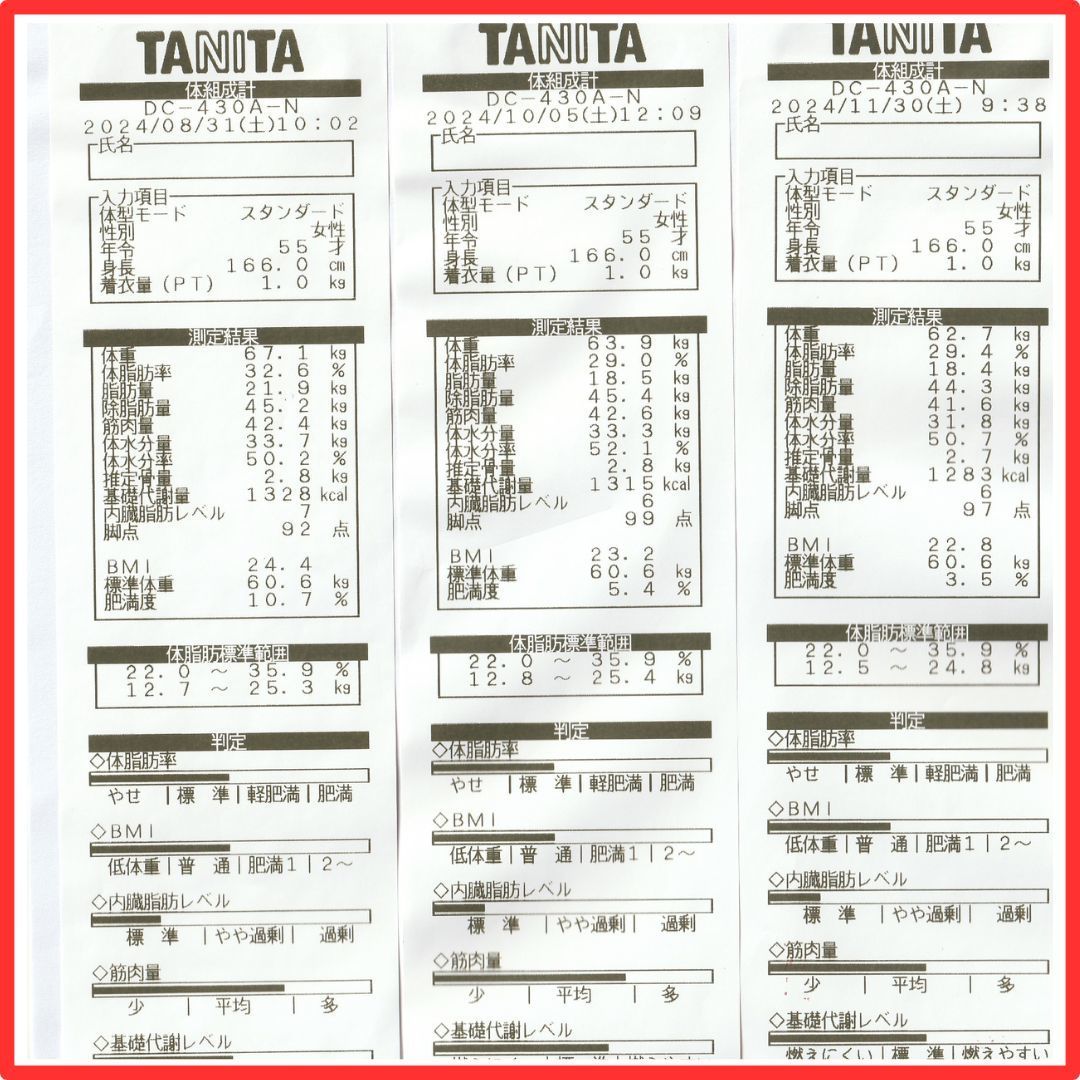 体脂肪率40.1%から30%とこちらも改善なさっていらっしゃいます。