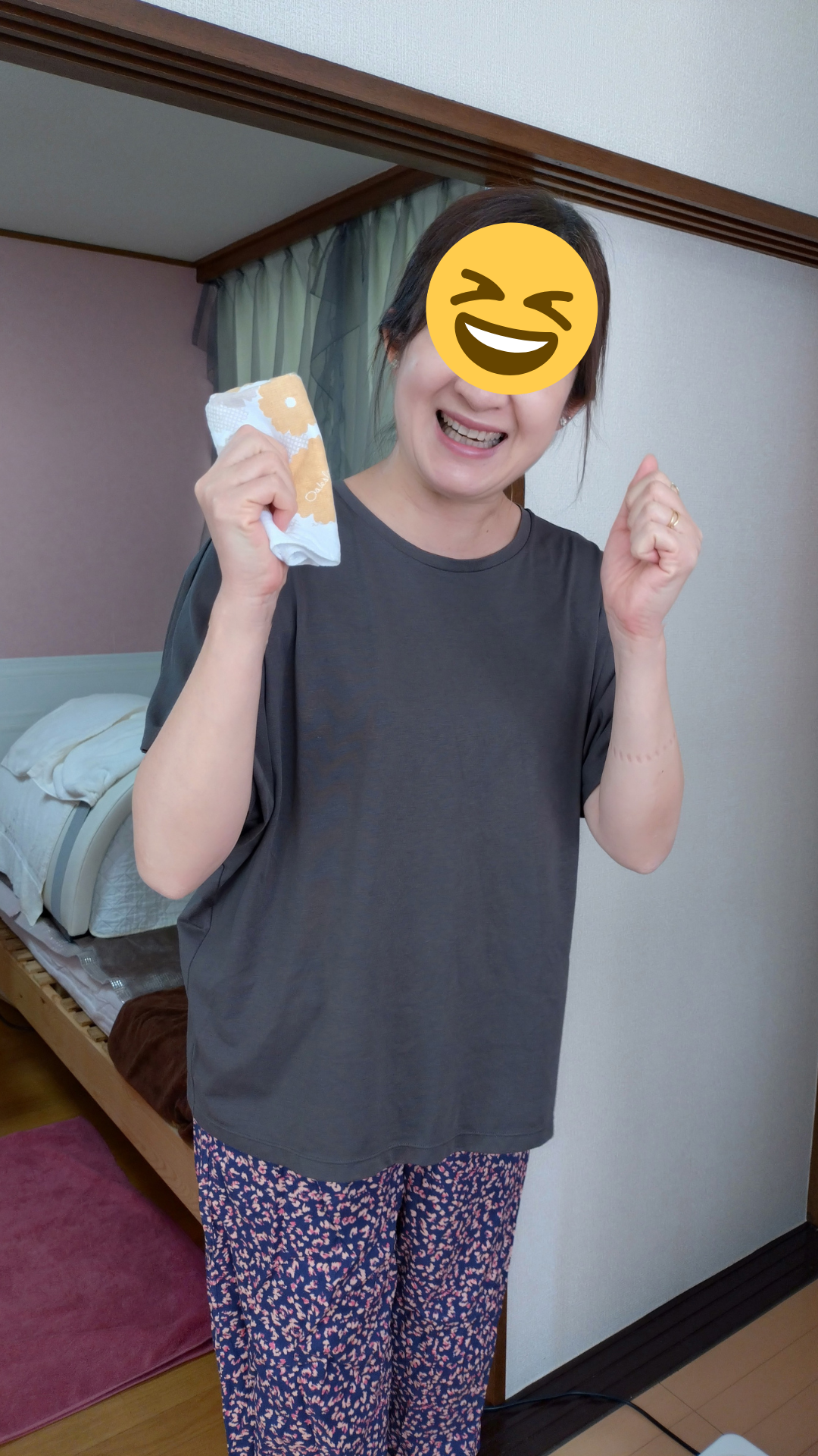 洋服を買う前にまずはLLサイズを手に取っていたのに、今、LLサイズの洋服は大きいです。二の腕周りが無くなったので正面から見るとかなり痩せている感があった。