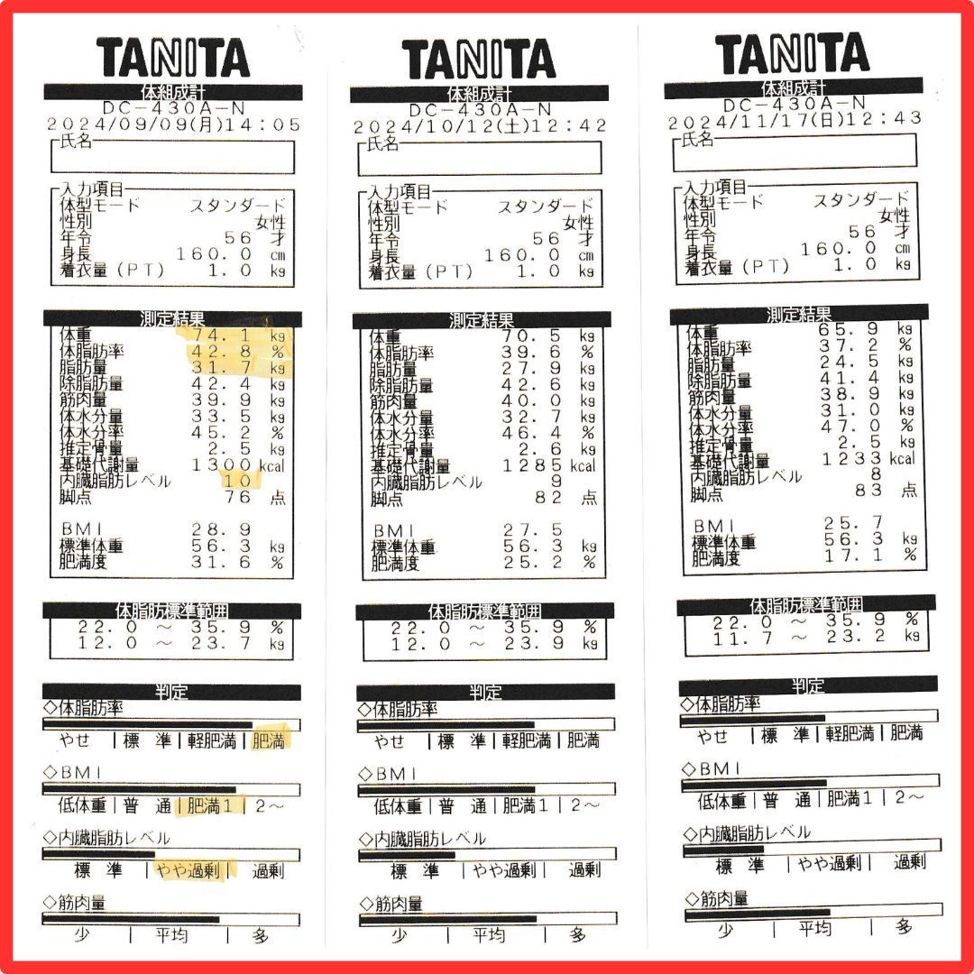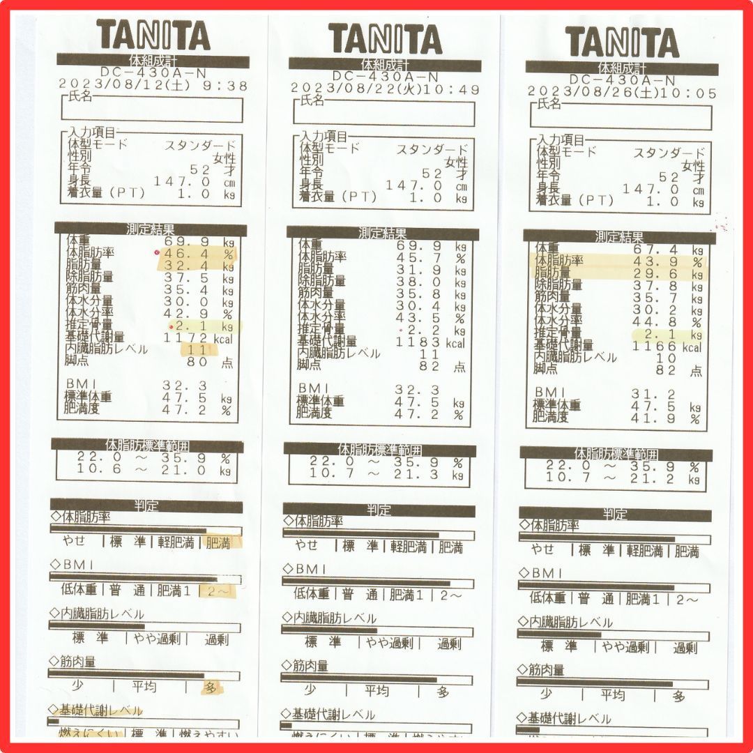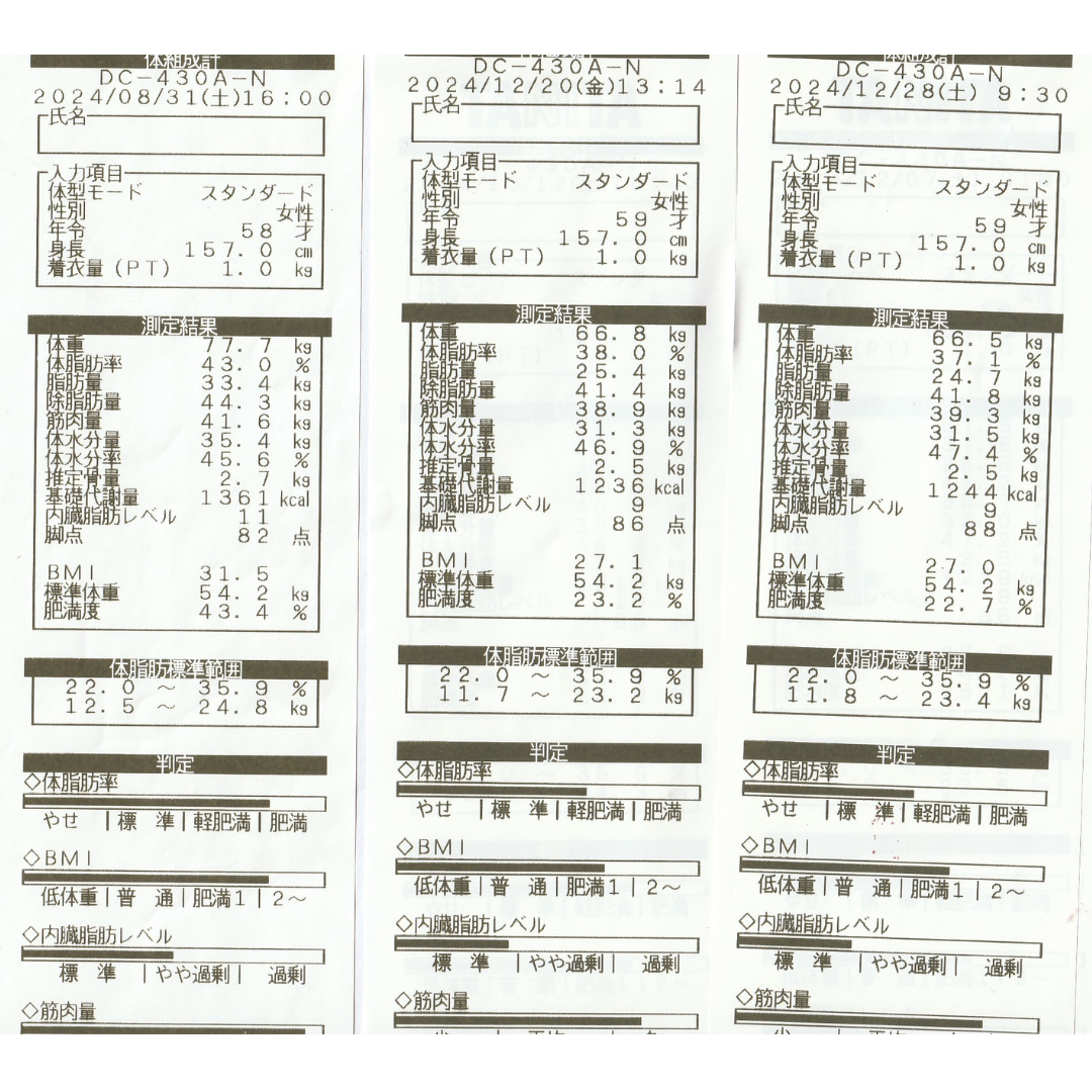 腎臓の働きも良くなかったため、むくみやすく体重のコントロールが難しかったです。水分バランスをうまく調節できない状態なので体重の増減ではなく、体脂肪率を意識していました。