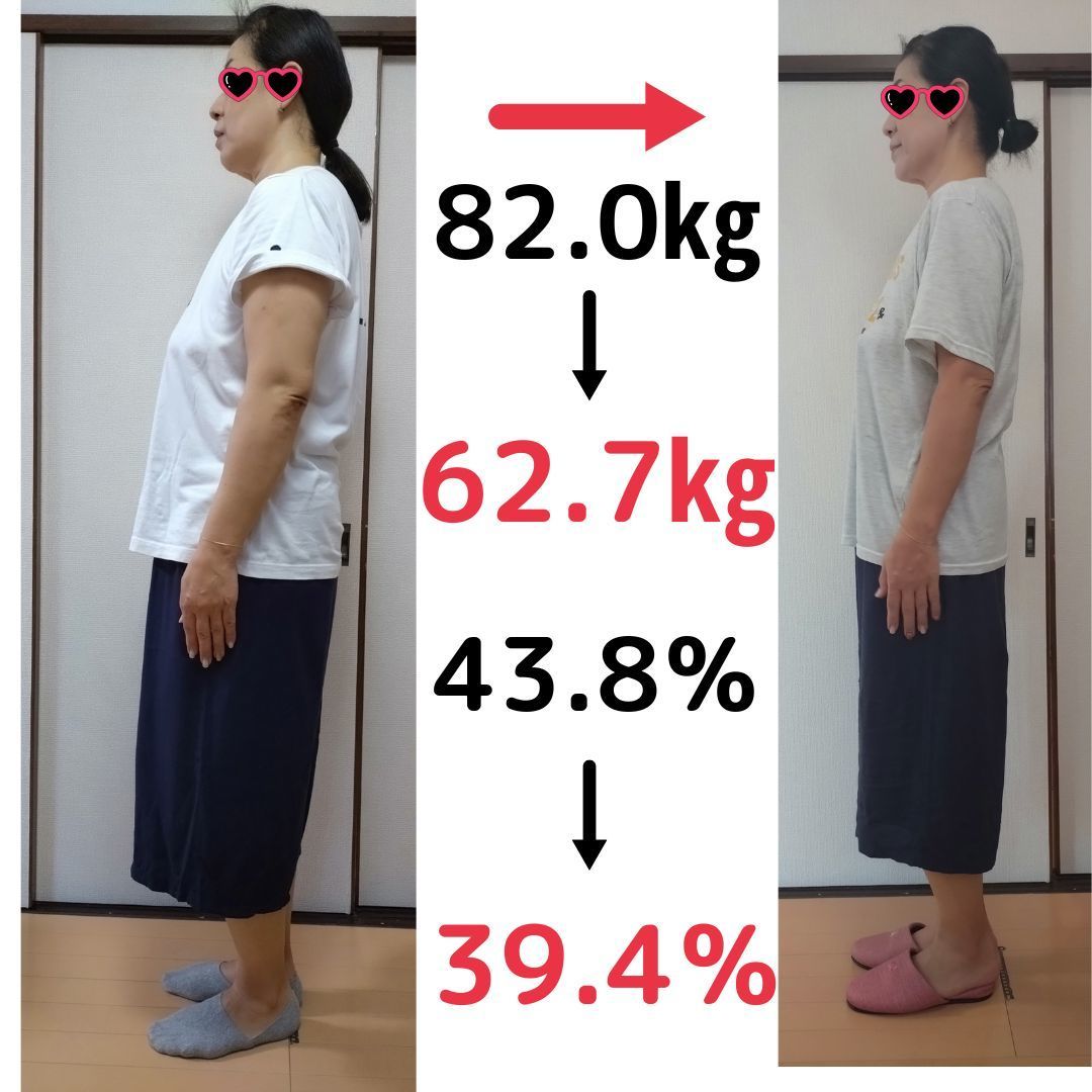 婦人科系の病気になり手術後は、血圧が徐々に高くなり160超え、高脂血症になり、更に糖尿病になりかかっていました。健康診断の結果も気になっていました。甘いものが大好きで間食はやめられず、摂食障害ぎみで動機や息切れもするようになりました。外食も多く、お友達とのお付き合いや旅行も楽しみたい!でも、長く人生を楽しむためには、絶対に痩せたいと思っていました。