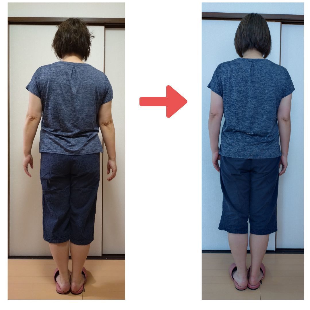 ■体型がすっかり変わりました。今まではお腹周りや腰回り、背中や二の腕の気になっていたところがスッキリしてきました。歩くときには股が当たっていたのですが全くないです。