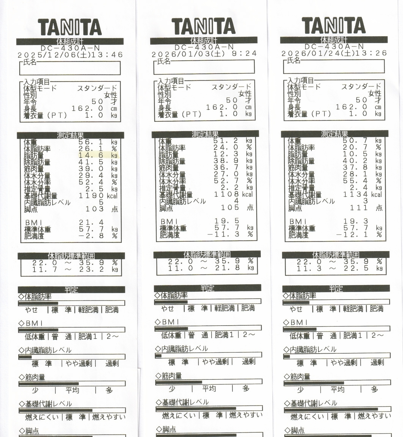 主人からは「もう痩せなくても良いよ」と、言われます。娘たちからは「ママ、痩せてキレイ」と言われました。