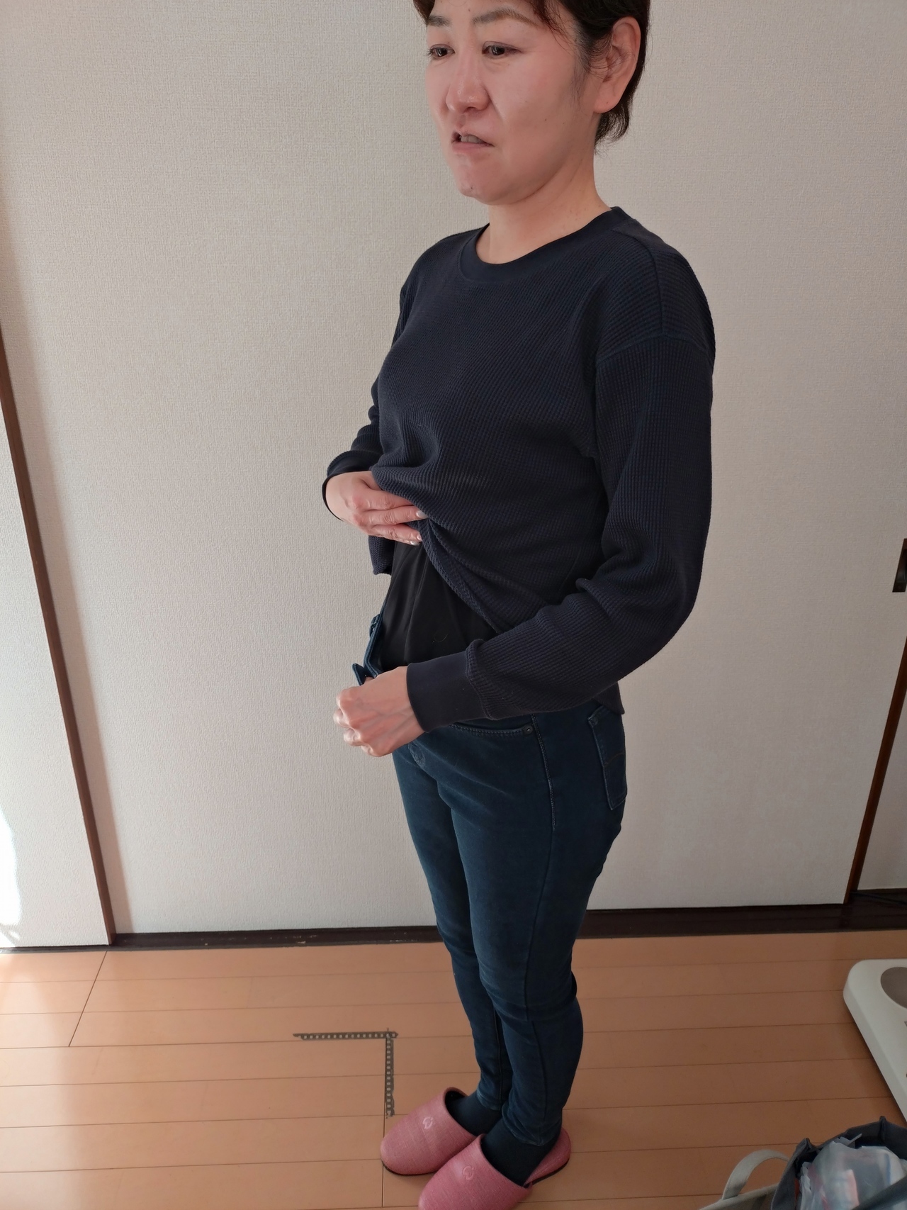 去年まで、前が締められなかったコートが今年の冬は後ろが余っています。夏に履いていたジーンズはベルトの一番細いところで止めて履かないと落ちてきます。苦しいと思った洋服が楽に入るのが嬉しいです。
