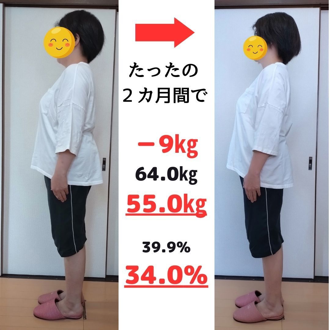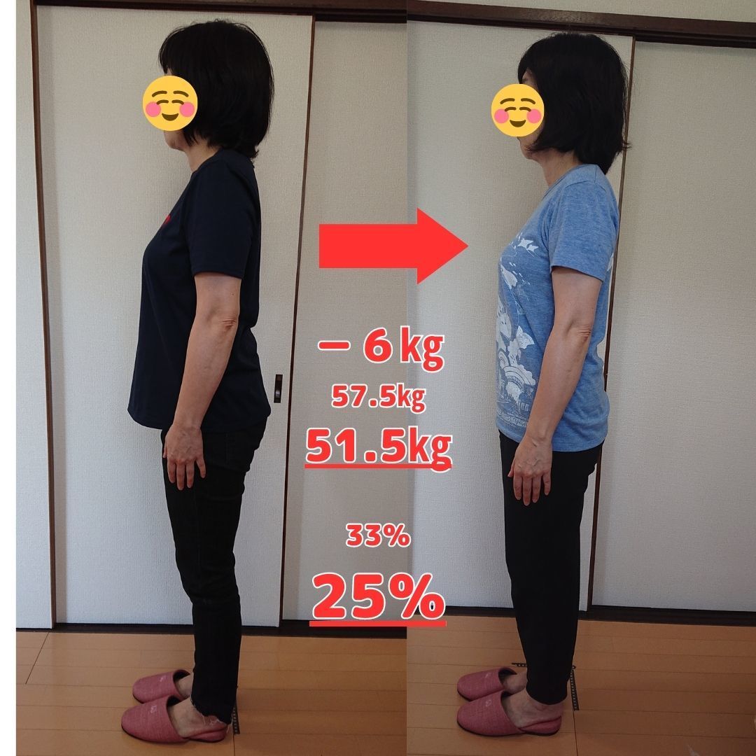 40代後半で太り気味。その時は運動で1年間で8㎏の減量に成功しました。コロナ禍で運動も思った通りにできなくなり、また体重が増えてきて、気がついたら55㎏になっていました。